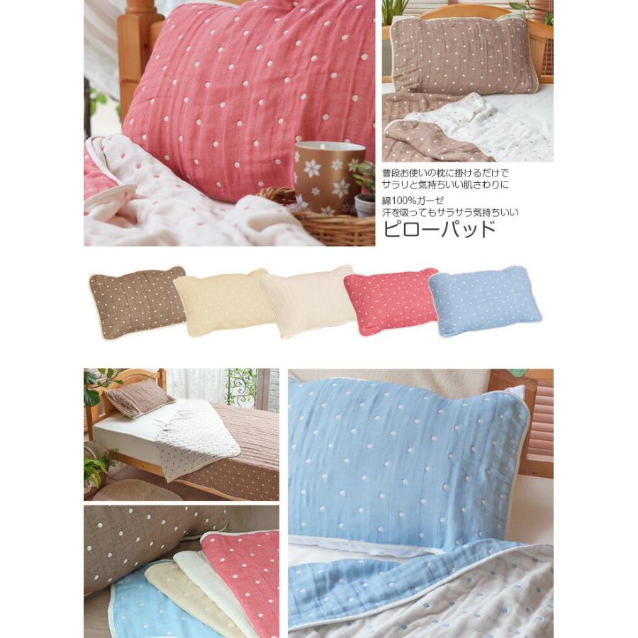 コットン100% エコテックス認証 6重織り水玉ガーゼピロパッド(43×63cm)【商品説明】・サイズ 43×63cm・素材 綿100%・製造国 中国※沖縄・離島は別途送料がかかります。後程店舗からお送りするメールでご確認お願い致します。ご自宅で気軽にお洗濯出来るので、いつも清潔に気持ちよくお使いいただけますさらりと柔らかく、肌触りの良い寝装アイテムです。