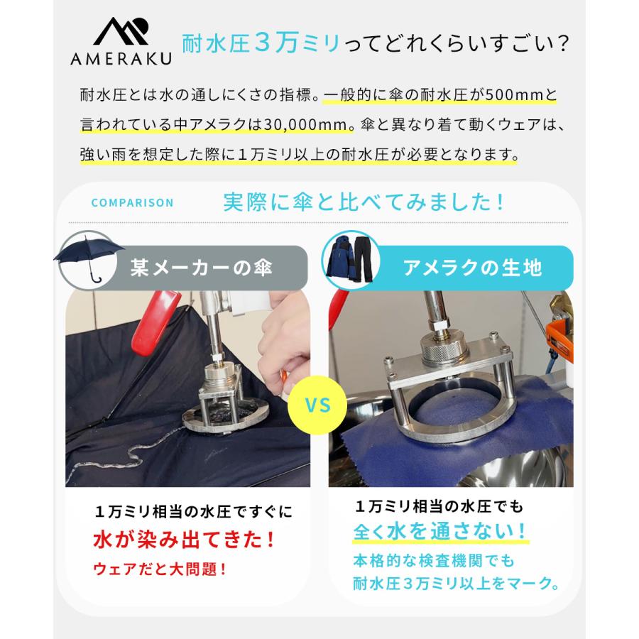 高い耐水圧で水が染みないため台風・豪雨・大雨などの際の防災グッズにもおすすめです。