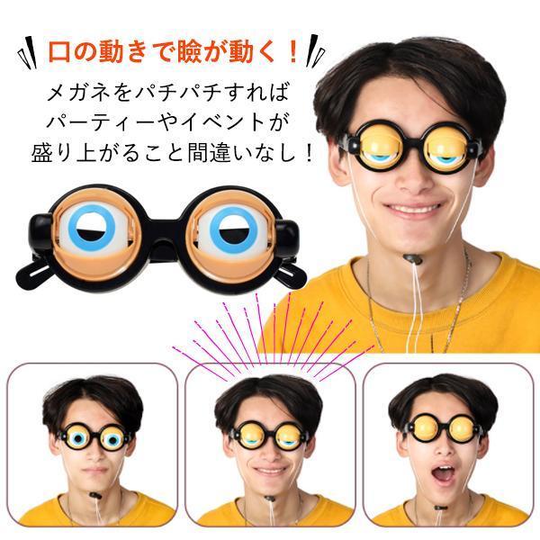 【商品説明】メガネから目が飛び出たデザインで掛けるだけで強烈なインパクト。ザコシショウさんのような面白いリアクションができるパーティー眼鏡です。メガネをパチパチすればパーティーやイベントが盛り上がること間違いなしです。あごに紐を掛けて口を開くと目が閉じ口を閉じると目が開きます。紐を手で引いて手動で動かす事も、片目だけを閉じたりする事も可能です。2個セット おもちゃ ザコシショウ メガネ パーティー メガネ ハリウッド ザコシ 余興 コスプレ