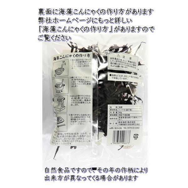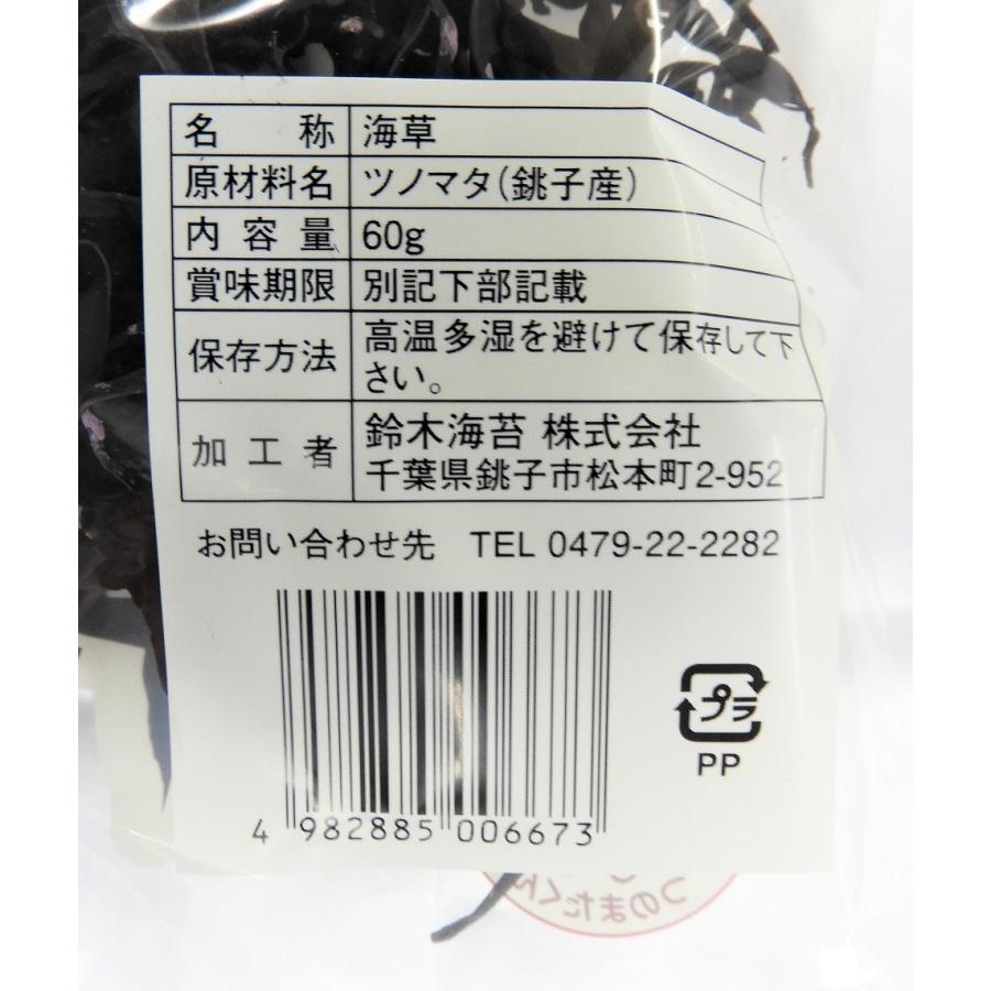 銚子産海藻は他の産地に比べると、品質が良い傾向があります。さらにこちらの商品は、弊社にて生の状態から一括して管理していますので状態が良いです。原材料 千葉県銚子産つのまた内容量 60g