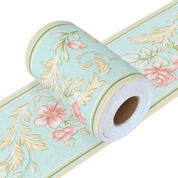 Yoillione トリムボーダー マスキングテープ シール壁紙 インテリアシール 浮彫 凹凸 牡丹 リメイクシート キッチンシール 北欧 防水 剥がせる ボーダーテープ ヨーロピアン ウォールステッカー 花 3d 青 立体 賃貸 トイレ 洗面所 リ
