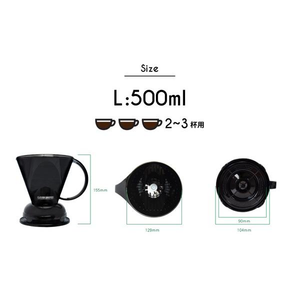 サイズ:ドリッパー本体:約幅129×奥行き104×高さ155mm底面内径:約90mm容量:2〜3杯用(500ml)付属品:ペーパーフィルター100枚ドリッパー本体素材:コポリエステル樹脂(トライタン)バルブ素材(リング及びボール):シリコンコースター・フタ兼用素材:AS樹脂耐熱温度:102℃