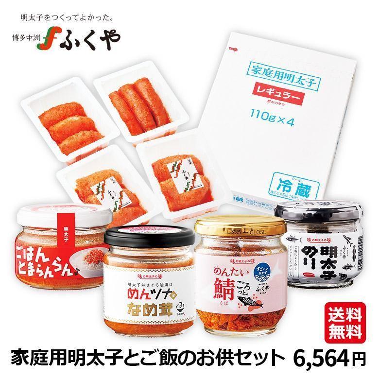 ふくや 明太子 ( 家庭用明太子とご飯のお供セット ) 2025 切れ子 ご飯のお供 家庭用明太子 鯖 明太子のり めんツナ なめ茸 ポイント利用 ギフト