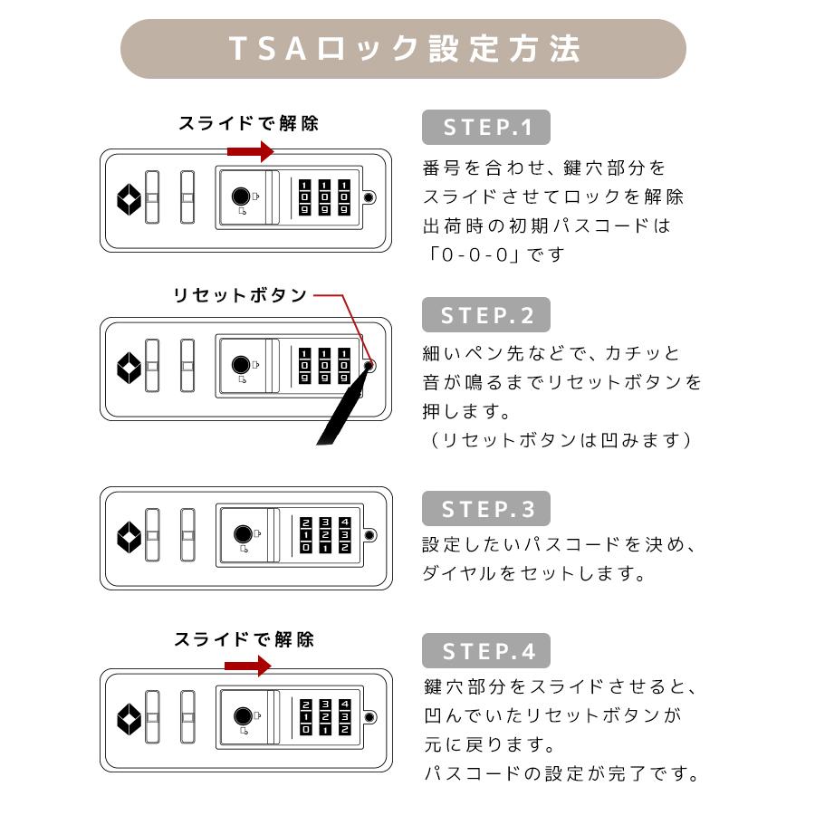 ・TSAロック方式の商品には、鍵穴が付いていても鍵は付属しておりません。(検査時に空港のTSA職員が専用の鍵で開錠するためのものです)