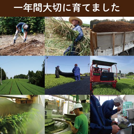 その葉を、通常の2〜3倍の時間をかけて葉の芯までしっかりと深く蒸すことにより、成分が分解され、タンニン(苦渋味)が減り、アミノ酸のテアニン(甘み)が増してまろやかで緑色の濃いお茶に出来上がります。