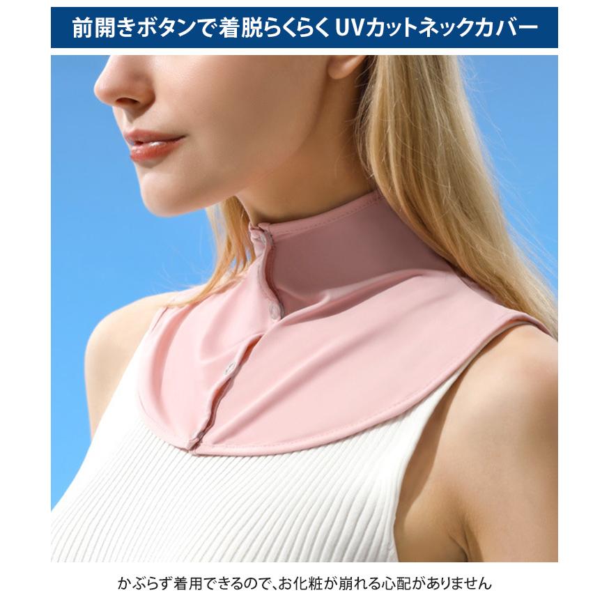 UVカット UPF50+ 接触冷感 前開き ネックカバー レディース uv 冷感 ボタン クール ひんやり 涼しい おしゃれ 付け襟 首カバー ネックウォーマー ラッシュガード スポーツ ゴルフ 登山 夏 節電