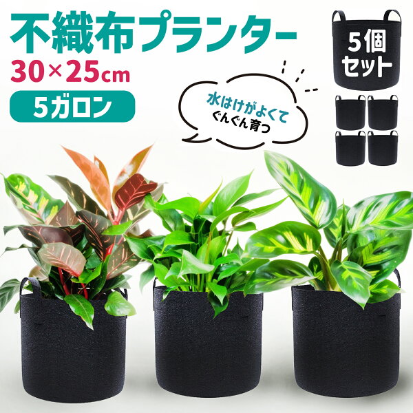 不織布 プランター 5ガロン 30×25cm 5枚入り プランター 布製 栽培袋 不織布プランター 家庭菜園 野菜 不織布ポット 10号 鉢カバー プランターカバー 植木鉢 布製プランター 不織布 ポット フェルトプランター 布鉢 家庭菜園 いちご ミニトマト 布鉢