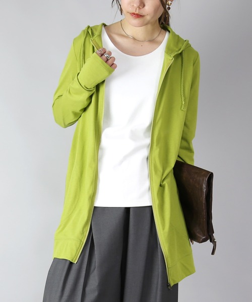 キーワード:パーカー レディース ジップ 長袖 無地