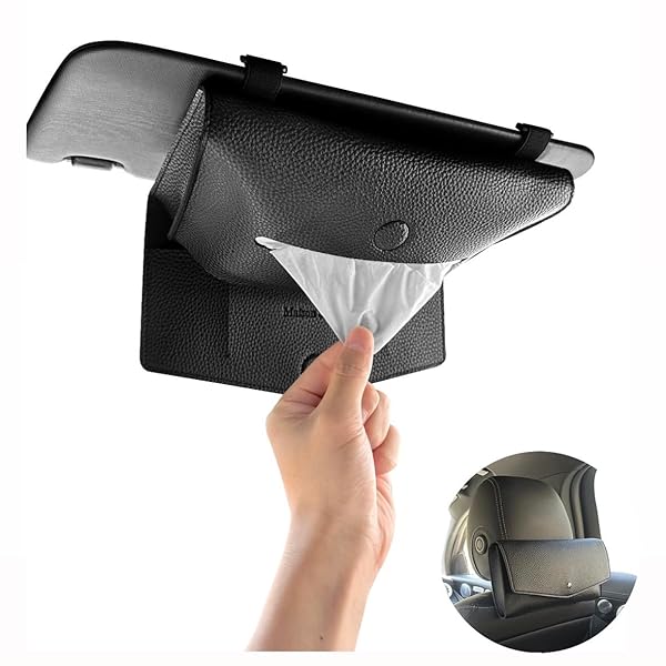 【2way仕様】車 ティッシュホルダー ティッシュケース サンバイザー ヘッドレスト カー用品 便利グッズ 車内 (薄型(箱レス用), 黒)