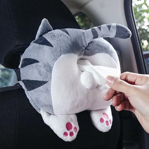 車用ティッシュケース 車 ティッシュカバー カー ティッシュボックス ぬいぐるみ 動物 可愛い 漫画 フワフワ 吊り下げ 便利 車内収納 (ネコ 24*24cm)