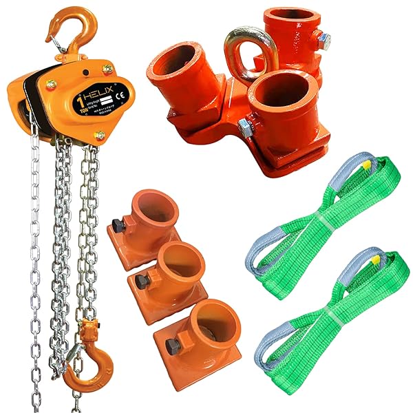 HELIX 三脚ヘッド 1t チェーンブロック用 3脚ヘッド 1ton 果樹の引抜に 吊り上げ レバーホイスト【三脚ヘッド用スパイク 1ton 3個、チェーンブロック 1ton 3m、ベルトスリング 50mm 2m セット】