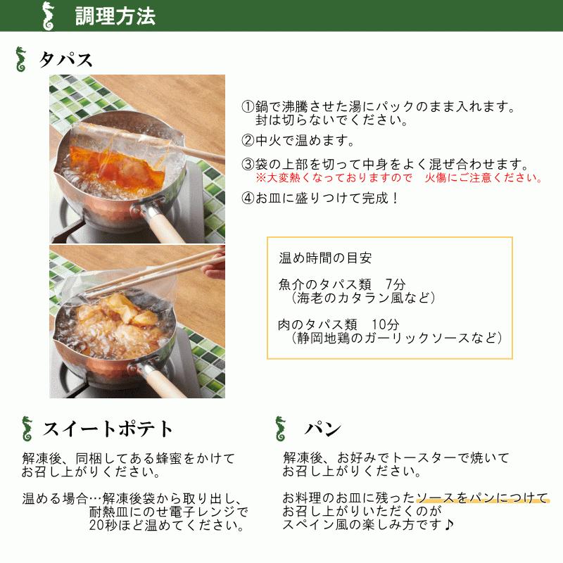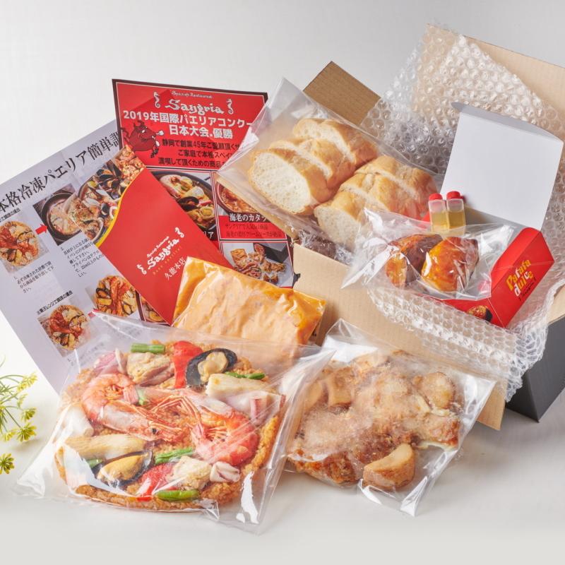 【内容量】魚貝のミックスパエリア 2人前 620g海老のカタラン風 濃厚クリームソース煮 2人前 180g国産地鶏のガーリックソース仕立て 2人前 310gバケット 6カットスイートポテト 2人前 130g賞味期限/ 各パッケージに記載凍結前の過熱の有無/ 加熱してあります。加熱調理の必要性/ 加熱してお召し上がりください。保存方法/ −18℃以下(要冷凍)販売者/ 株式会社 エス・アール・シー サングリア通販事業部 静岡県静岡市駿河区根古屋162-1
