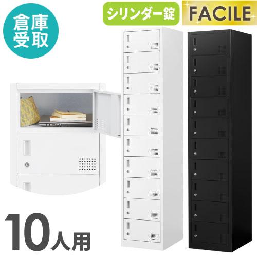 【ビジネス割10%OFF&1200円OFFクーポン9/26-10/24】 【倉庫受取限定】 ロッカー 10人用 スリム 1列10段 かぎ付き オフィス スチール ホワイト ブラック 下駄箱 シューズロッカー シューズボックス FAC-S10-2-SO