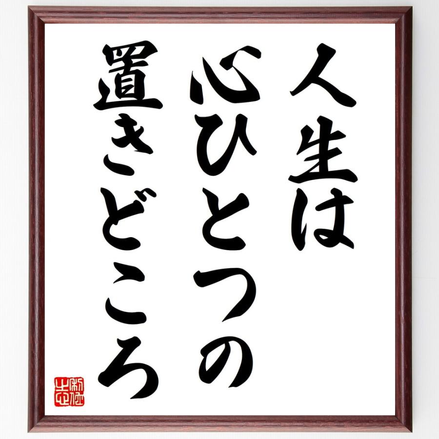 名言「人生は心ひとつの置きどころ」を、千言堂の専属書道家が気持ちを込めて手書き直筆いたします。この言葉(ひとこと)は名言集や本・書籍などで紹介されることも多く、座右の銘にされている方も多いようです。ぜひ、ご自宅の玄関、リビング、部屋、書斎、またビジネスを営む会社のオフィスや店舗の事務所、応接室などにお飾りください。大切な方への贈り物・プレゼントにもおすすめです。一点一点が直筆のため、パソコン制作のような完璧さはございませんが、手書きの良さを感じていただけます。当店では挑戦、努力、成功、幸福、感謝、成長、家族、仕事、自己啓発など様々なテーマから人生の糧となる名言、四字熟語、諺、故事成語、格言を厳選、毛筆で直筆、お届けしています。