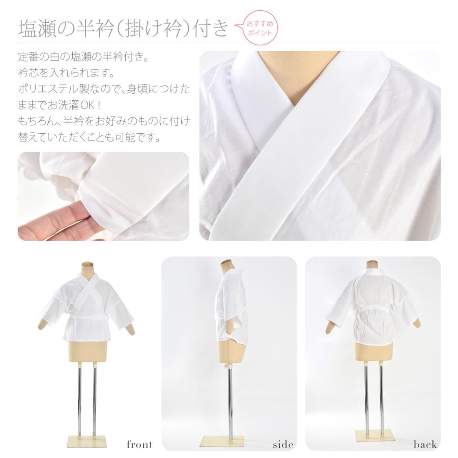 上身頃:さらし 袖:- 衣紋抜き:なし 胸紐:なし 半衿:塩瀬 手縫い 衿芯装着:可 居敷当:なし