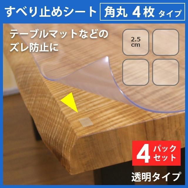 貼ってはがせる 滑り止め両面シート 角丸4枚タイプ 4パックセット すべりどめ ビニール 透明 クリア テーブルクロス デスクマット ビニールマット