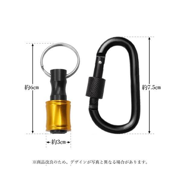 こちらの商品は追跡可能メール便/定形・定形外郵便にて発送します。宅配便ご希望のお客様は「有料宅配便」をご選択ください。【商品説明】様々なビットに対応、ビットホルダー。スリーブを下げると取り外しができます。カラビナ付きで持ち運びも楽々。【機能】対応サイズ:六角 1/4 6.35(6.35、1/4サイズでも引っかかりの溝が無い場合はロックできません)ビットホルダー ソケットホルダー 6点セット カラビナ付き 携帯用 コンパクト キーホルダー 工具