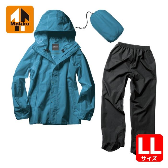 マック Makku 雨具 合羽 カッパ パノラマバッグインレインスーツ スカイブルー LL (1着) 品番:AS514037