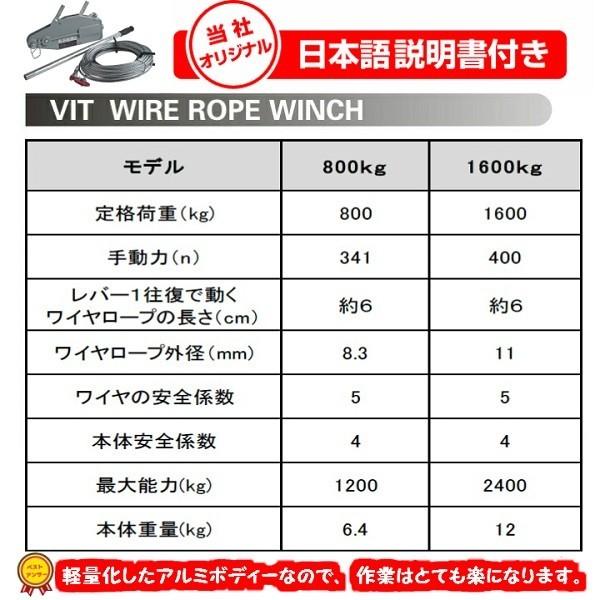 爆買 ハンドウインチ ウインチ チルホール ハンドウィンチ 手動 800kg 30m ワイヤー ロープセット ウインチロープ 林業 倒木 伐採 重量物 吊り上げ 牽引 けん引