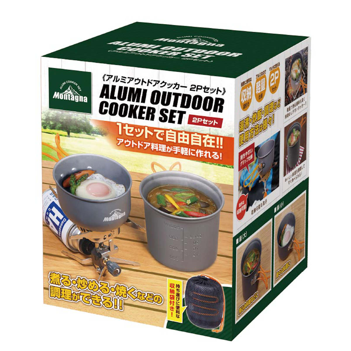 ●キャンプ調理に必要なお鍋2種類がセットになったアウトドアクッカーです。