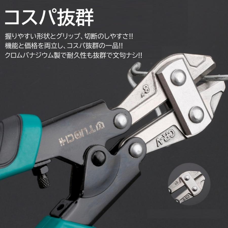 ■商品概要・テコの原理と抜群の切れ味でケーブルやワイヤーもサクッと切断します!!・耐久性のあるクロムバナジウム合金でコスパ抜群!!・滑り止めと手によくフィットする設計のため長時間の作業でも使いやすい!!・ネジや釘、チェーン、ワイヤーケーブル線、金網、鉄柵等々、様々なな物を切断可能!!・柄の近くのボルトを回し刃を平行に合わせる調節をすると精度が上がります!!・全国一律送料無料となります!!■商品仕様【入数】:1個【材質】:クロムバナジウム合金【サイズ】:商品画像参照