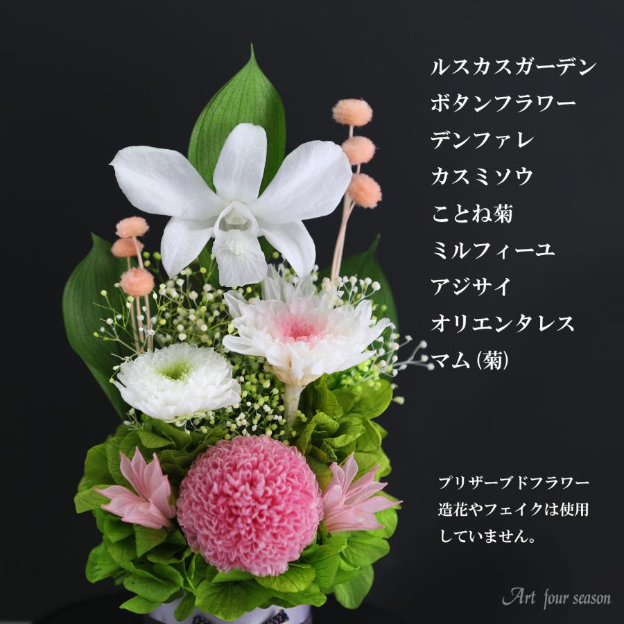 お花:プリザーブドフラワー材質:プラスチック寸法(cm) :高さ20 幅13 奥行13※のしの名入れはお受けしておりません。※ご注文後、「ご注文確認メール」が店舗より送信されますのでメール内容を必ずご確認ください。※ギフト商材のため商品明細書等は、同梱しておりません。※とげのあるお花や造花・フェイク等は使用しておりません。※商品は生花を加工したプリザーブドフラワーです。長い間お楽しみいただけます。