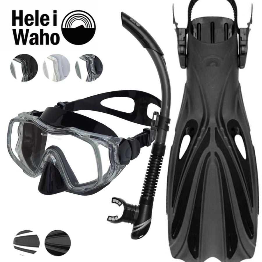 ヘレイワホ ダイビング 軽器材セット 3点 視界の広い マスク 水が入りにくいシュノーケル 初心者向け ストラップフィン シュノーケル