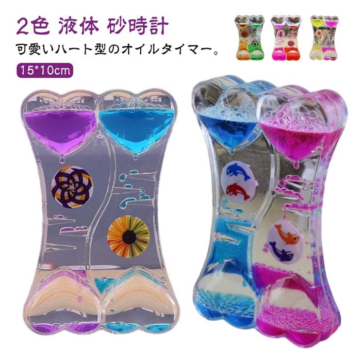 2個セット オイルタイマー おしゃれ 2色 オイル砂時計 ハート型 液体 砂時計 タイマー インテリア 卓上 置物 オブジェ 装飾 飾り物 癒し おも