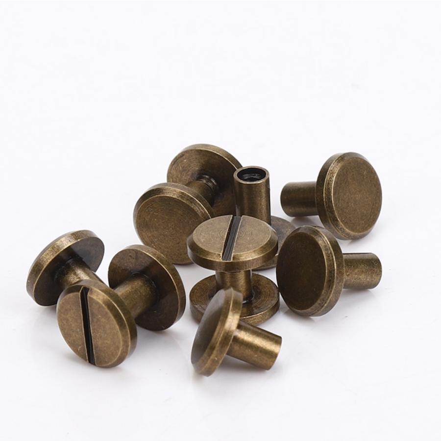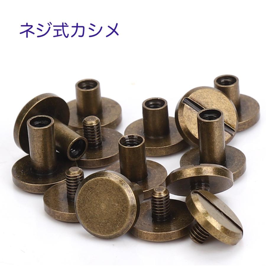 ねじ式カシメ材質:真ちゅう 表面メッキ色:古銅色数量:1個規格(頭部直径 X 軸径D X 足のサイズL)規格1:10X4X3mm規格2:10X4X4mm規格3:10X4X5mm規格4:10X4X6mm規格5:10X4X7mm規格6:10X4X8mm規格7:10X4X9mm規格8:10X4X10mm規格9:10X4X12mmメール便OK