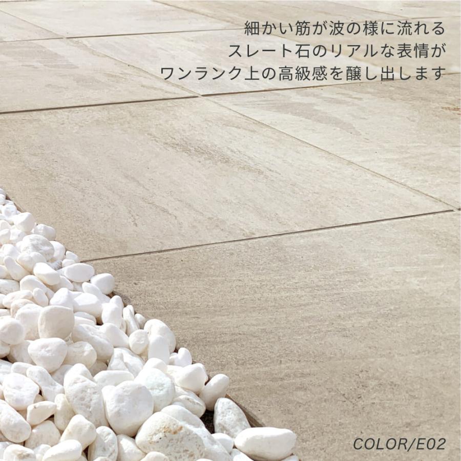 石模様が美しく流れるスレート石の表情を再現した高級感ある厚物タイル。耐久性が高く、歩道・広場・店舗・車の乗り入れまで幅広く使用できる舗石タイル。