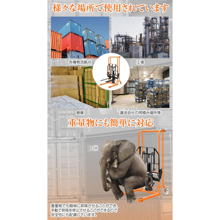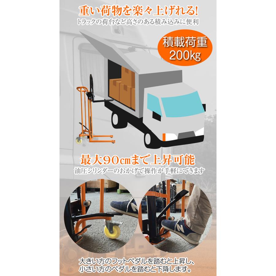 積載荷重200kgで重たい荷物も持上げます。