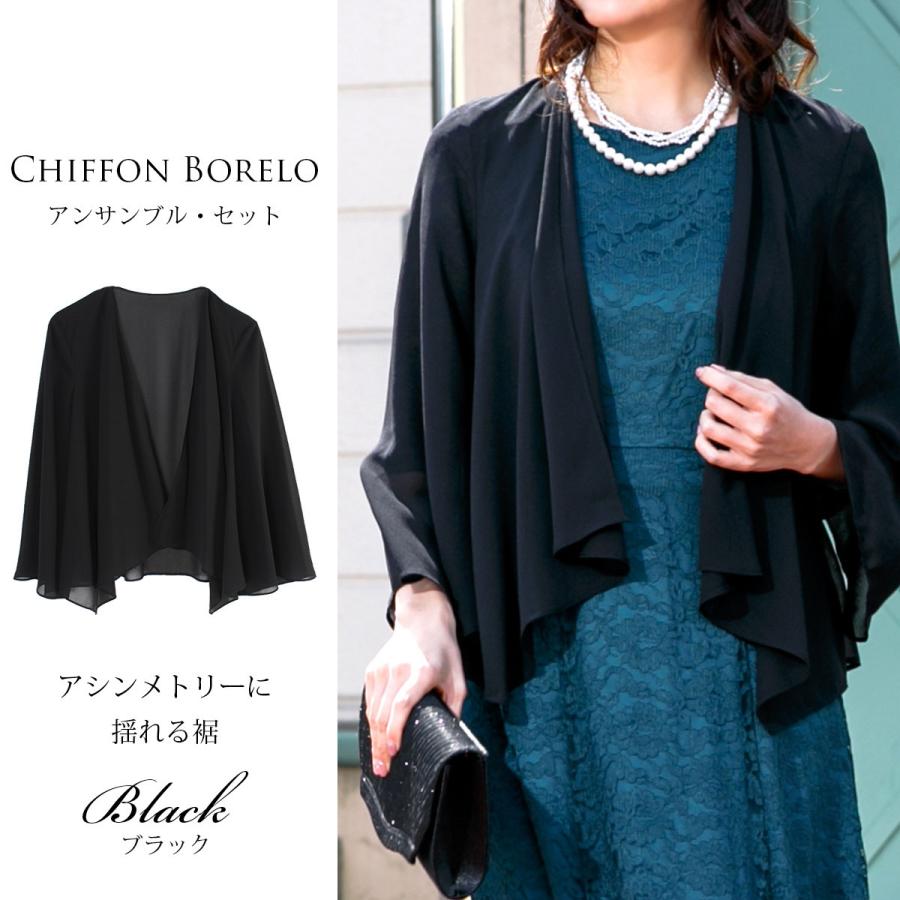 シフォン素材にて仕上げた上品な印象の羽織もの。軽やかシワになりにくい、オールシーズン対応。