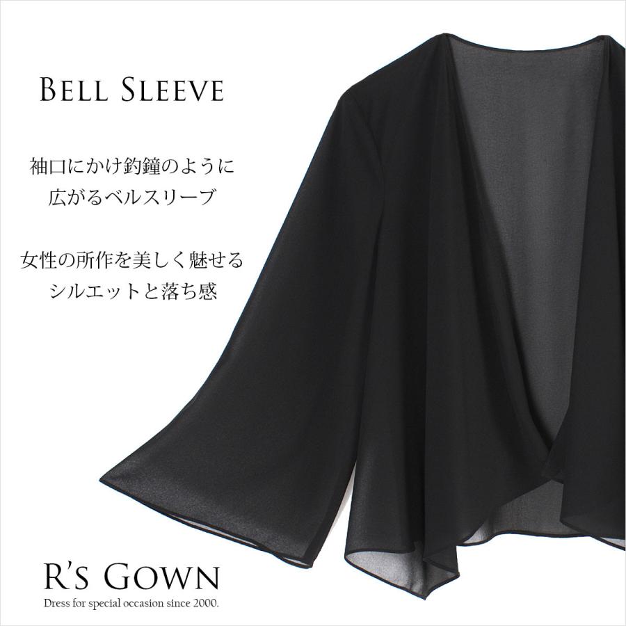 畳みやすく、コンパクトに超軽量。ベル形をしたスリーブデザイン。袖口に向かって広がるシルエットが気になる二の腕もカバーしながら腕を長く見せます。前で重なるドレープはシフォンの美しい落ち感とさざ波のように揺れるアシンメトリーの裾が全体の印象をエレガントに仕上げます。