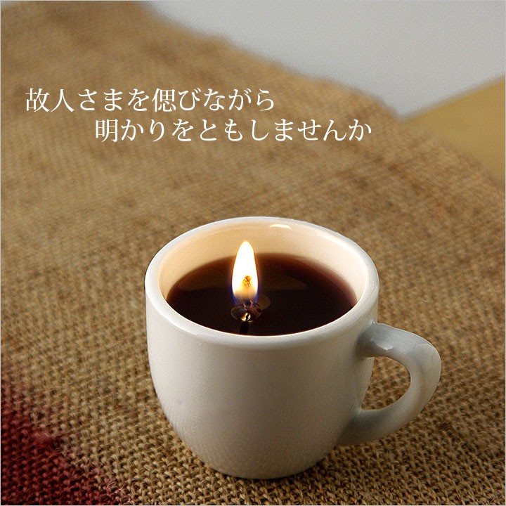 お供えにぴったりな「故人のろうそくシリーズ」のキャンドルです。お仏壇や墓前に手向けて、手元供養をなさってください。■商品詳細・幅70mm×奥行59mm×高さ47mm・燃焼時間:約9時間・備考:コーヒーの香り付き■この商品はご注文後、お取り寄せとなります。〜1週間お時間を頂戴いたします。他の商品と一緒にご注文の場合には、納期が一番遅いものと一緒にお届けしております。
