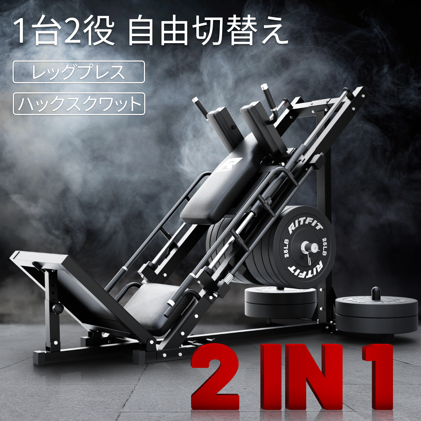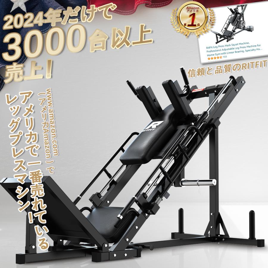レッグプレスに3つ、スクワットに5つの調整可能角度・高さを用意。