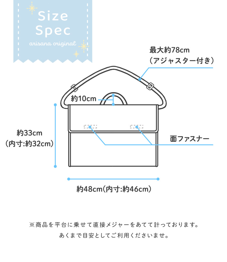※商品を平台に乗せて直接メジャーをあてて計っております。あくまで目安としてご利用下さいませ。