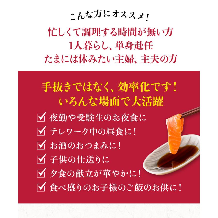 解凍してお好みの厚みで切るだけで、脂のりと旨みがたっぷりのサーモンがお刺身や様々なレシピで味わえます。