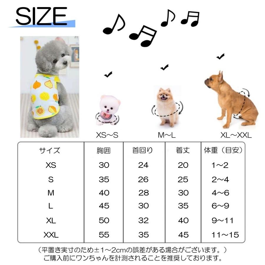 ・XXLサイズ…首回り:35cm / 胴回り:55cm / 着丈:45cm / 適正体重:11-15kg