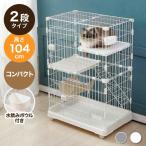 キャットゲージ 大型 2段 コンパクト ホワイト ハンモック キャスター付き 水飲みボウル ロック扉 スリム スチール製 シンプル おしゃれ ペットケージ 猫用ケージ ペットハウス 猫用 多頭飼い 脱走防止 ペット用品 猫用品 檻 保護 【送料無料】