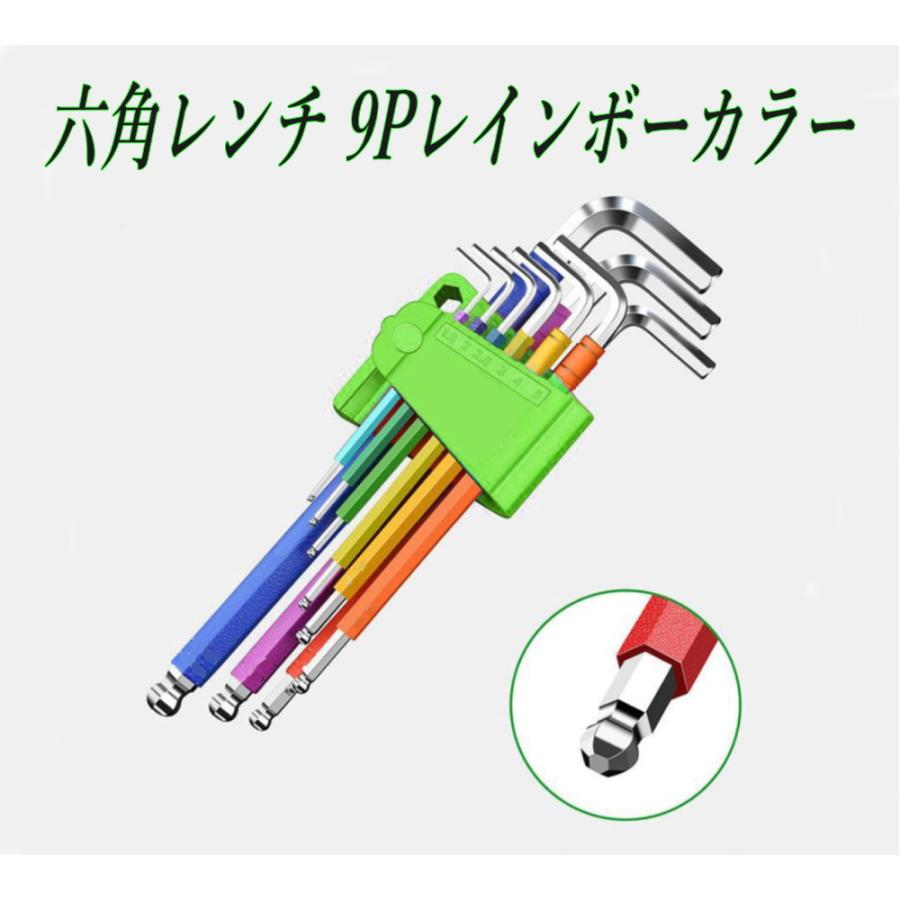 六角レンチ セット 9本組 レインボーカラー 耐久S2鋼 ボールポイント ロングタイプ