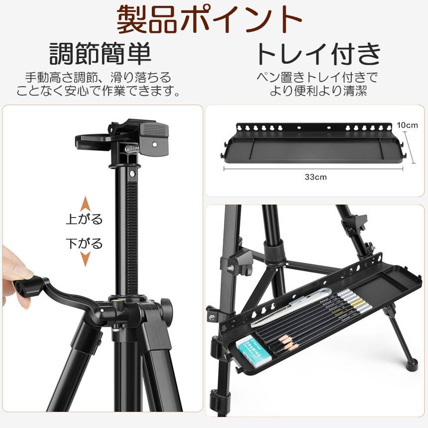 【持ち運が便利】アルミニウム製で軽量、持ち運びやお使いにも便利です。持ち運びに便利な収納バッグがついているので、屋外で絵画が楽しめます。 絵描きだけでなく、お店の看板やボードのスタンドにもなれます。