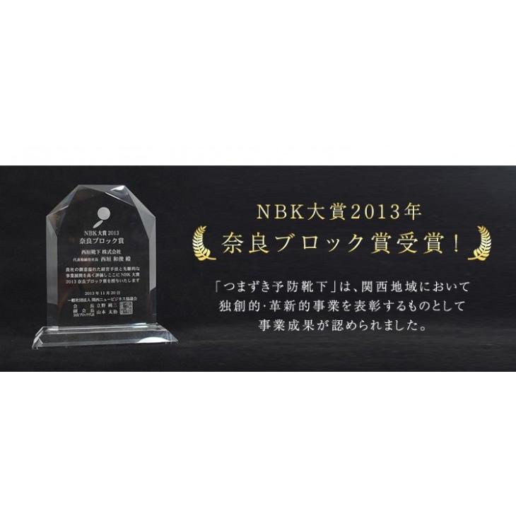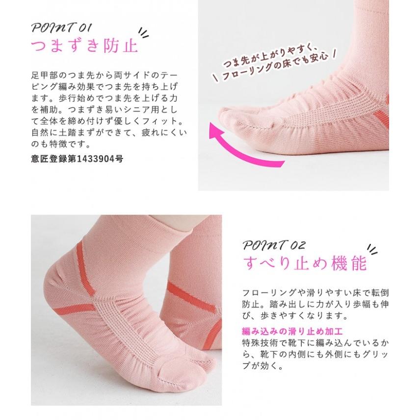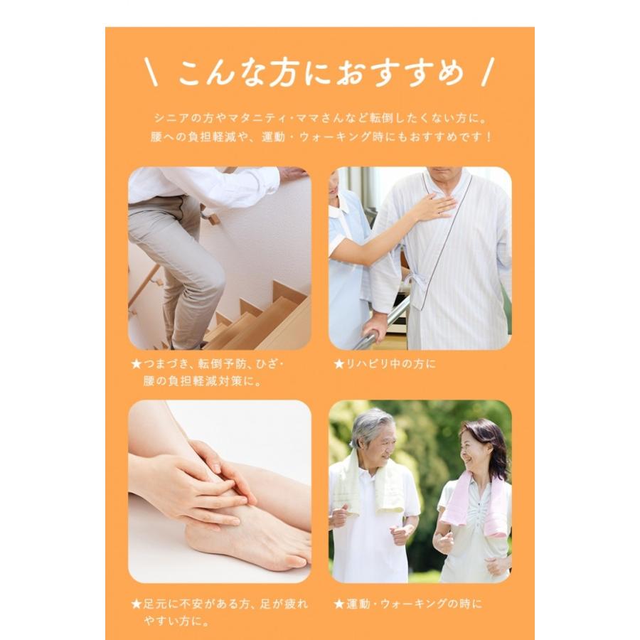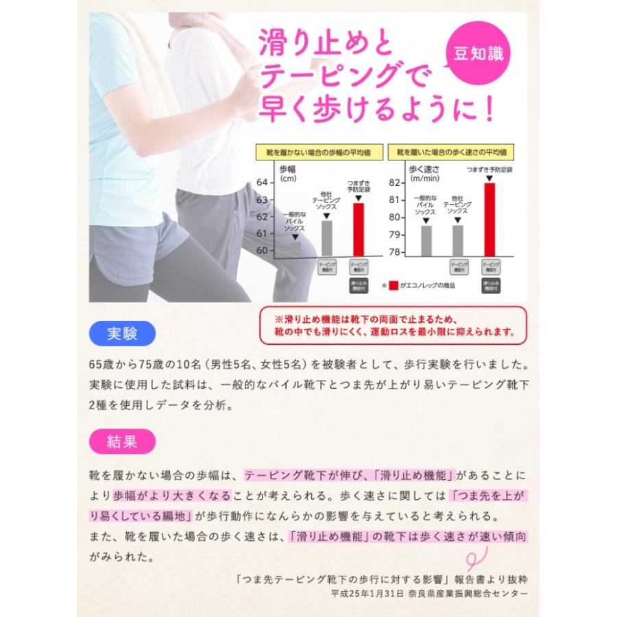 足甲部のつま先から両サイドのテーピング編み効果で、つま先を持ち上げます。歩き始めでつま先を上げる力を補助します。