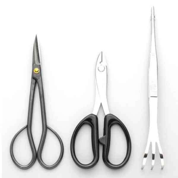 盆栽道具 盆栽手入れ道具 「盆栽入門お手入れ道具 3点セット」 剪定鋏 ステンレスワイヤーカッター 熊手付ピンセット 整姿 剪定 植え替えまで