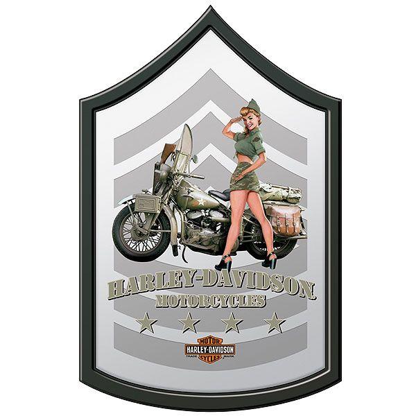 第二次世界大戦で軍に納入されたハーレーのミリタリー車両、WLAアーミーモデルが描かれたパブミラーです。