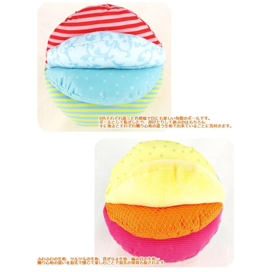 手にとってみると、それぞれがいろいろな生地になっていて、赤ちゃんの触感を刺激します。
