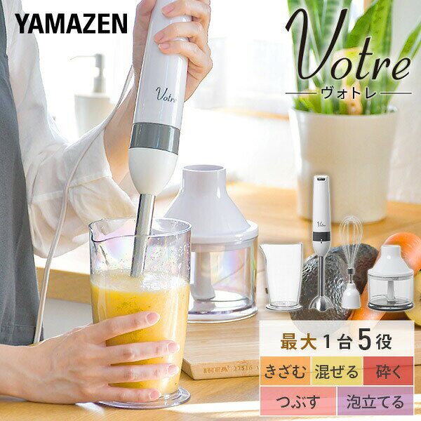 ハンドブレンダー ハンディブレンダー マルチスティックブレンダー <br>YHBA-S120/YHBA-T120 <br>ミキサー フードプロセッサー 泡だて器 ジューサー スムージー 離乳食 介護食 <br><br>山善 YAMAZEN ヴォトレ Votre <br> 【送料無料】