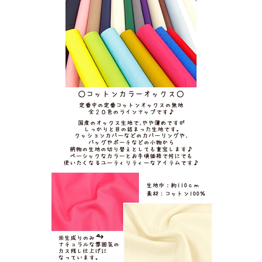 定番の【無地】国産「コットンカラーオックス」コットン100%カラー「オックス」生地/布/無地/オックス/オックスフォード/シャークスキン/シャーク/レッスンバック/入園入学/激安/最安/