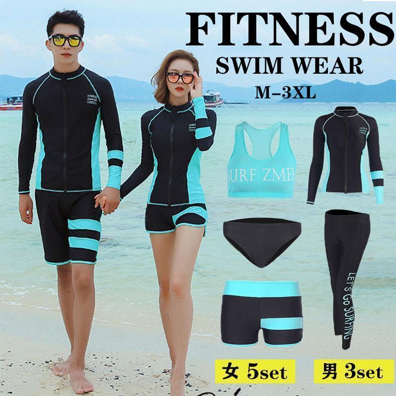フィットネス水着 レディース メンズ カップル 体型カバー水着 上下セット 長袖 サーフパンツ フ おしゃれ 日焼け防止 スポーツ スイムウェア