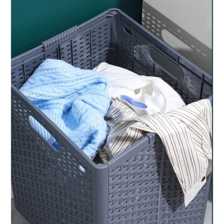 ・大容量で広げるとたくさんの洗濯物が入ります。持ち運びやすい取手付きでお部屋からバルコニーへの持ち運びもラクラク。