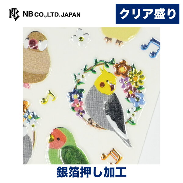 エヌビー社 ビジュシール 小鳥 とお花 | ステッカー sticker シール クリア盛り 銀箔 キラキラ デコレーション 手紙 封筒 色紙 封緘 大人 手帳 ダイアリー デコ おしゃれ 御洒落 オシャレ かわいい 可愛い カワイイ キュート シンプル 上品 インコ 文鳥